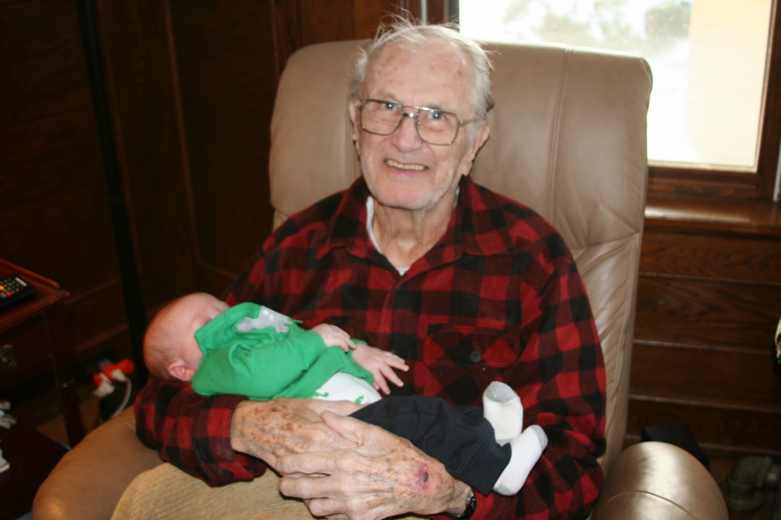 Poppop walked in as I was nursing Jimmy (he was under a towel.) Poppop was very concerned with what I had done to my arm, I pointed out the little feet emerging from the blanket then Jimmy got to meet his namesake.